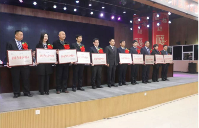 會議期間,頒發(fā)了多個獎項,各獲獎企業(yè)代表紛紛上臺領獎,縣委副書記、政府縣長韓明智同志為各企業(yè)頒獎。大會取得圓滿成功,與會企業(yè)深受鼓舞。華興寵物食品有限公司榮獲”南和縣產業(yè)發(fā)展十強企業(yè)“稱號。