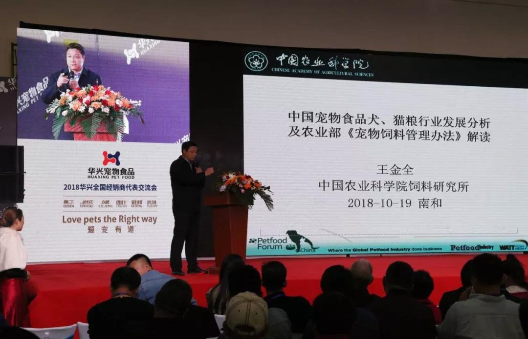 王金全博士授課,題為《中國(guó)寵物食品發(fā)展現(xiàn)狀分析和農(nóng)業(yè)部寵物飼料法規(guī)解讀》