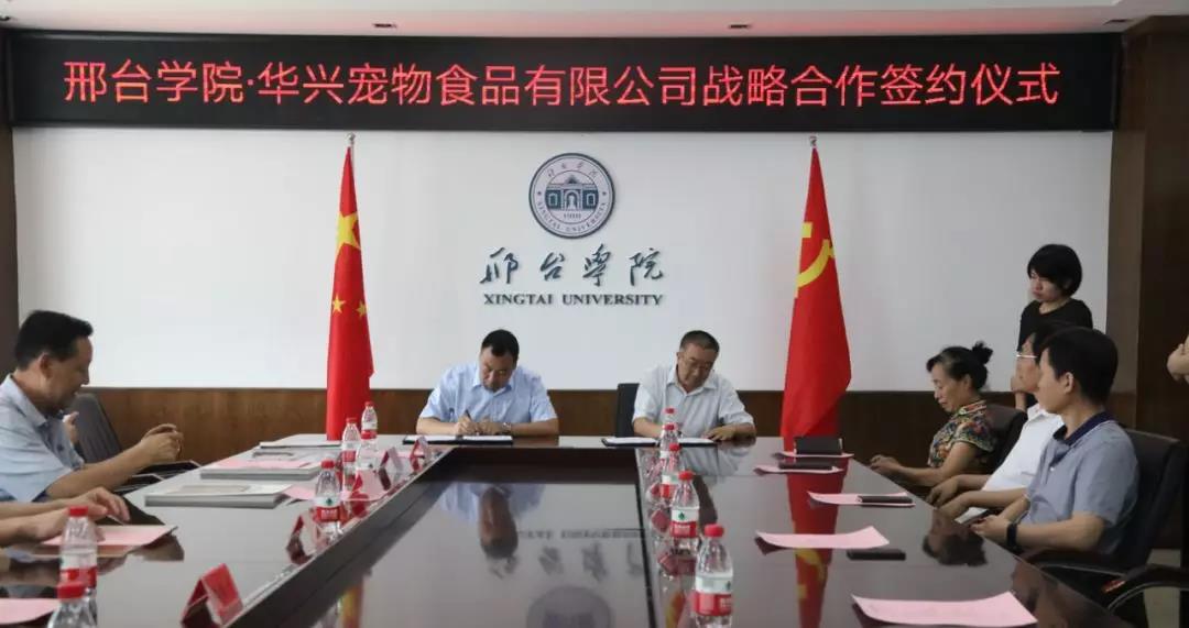 上午11時30分整,華興寵物食品有限公司總經(jīng)理冀葉軍與邢臺學院校長蔡振禹在戰(zhàn)略合作書上簽字,隨后由蔡校長代表邢臺學院進行授牌儀式,授予華興寵物食品有限公司“實踐教學就業(yè)創(chuàng)業(yè)基地”,標志著華興寵物食品有限公司和邢臺學院的戰(zhàn)略合作全面開始。