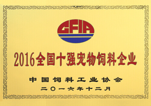 公司被評為“2016全國十強(qiáng)飼料企業(yè)”稱號