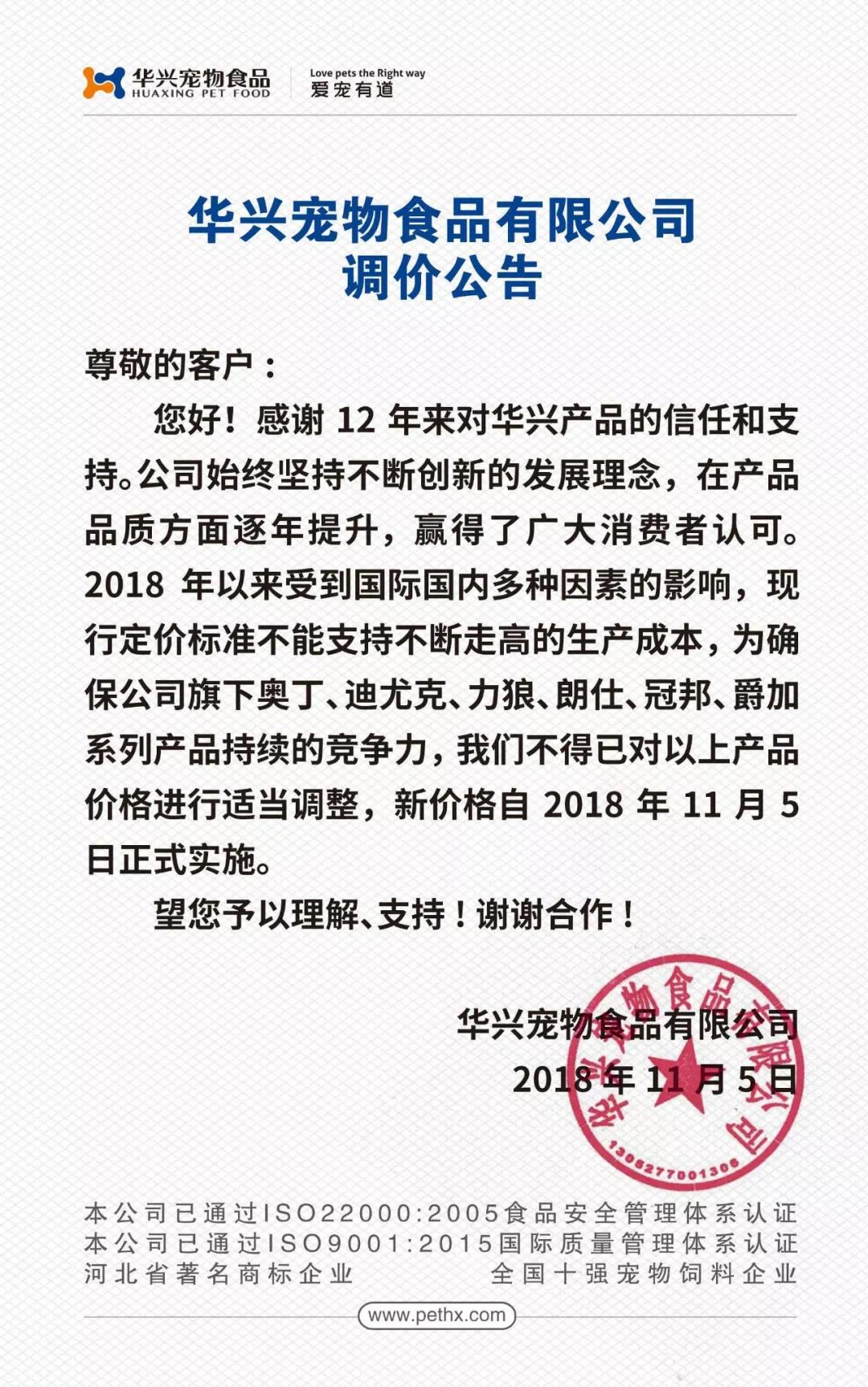 調(diào)價公告