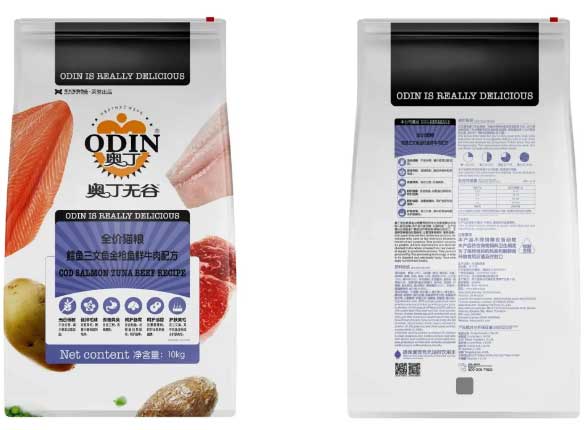 奧丁無谷系列本周新上單品—鱈魚三文魚金槍魚鮮牛肉配方全價(jià)貓糧,本產(chǎn)品共分為1.5kg/10kg兩種規(guī)格,粗蛋白質(zhì)≥38%,富含多種肉類,不含谷物,兼?zhèn)浯倥琶颉⒏纳萍S臭、呵護(hù)腸胃、護(hù)膚美毛、呵護(hù)泌尿等特點(diǎn)。